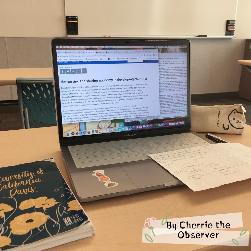 I started to collect information daily for writing my weekly post since I found it would be rush if I do everything in one or two days. I checked out YouTube videos and news in my leisure time but I barely cited them since they are less authored. I would save some websites that seem to have good information but not read them all. When I have time to sit down to do research, I will filter out some sources by using Google Scholar and UC Davis Library. For some sources that I found need to pay online, I would go to the UC Davis Library website to check if it’s available. For example, for a book called “What’s yours is mine: against the sharing economy”, I can access it for free through UC Davis Library.