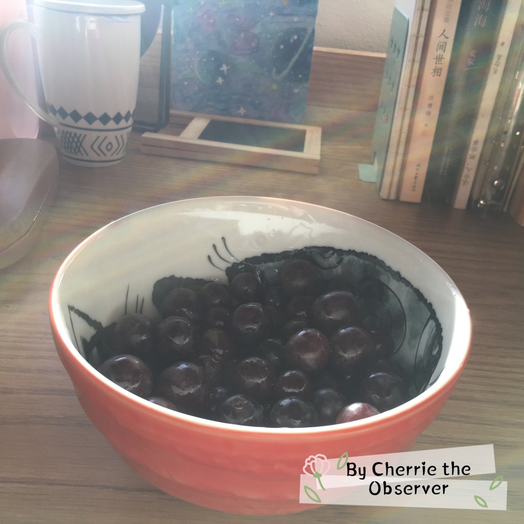 I don’t eat or drink anything while writing because I need to focus. However, I take breaks! Usually, it’s just a 10-minute break when I get tired. When I felt like I have tons of ideas in my mind, I can’t stop writing. The picture on right shows how’s my food break looks like. I like some fresh things to fresh my mind such as grapes.