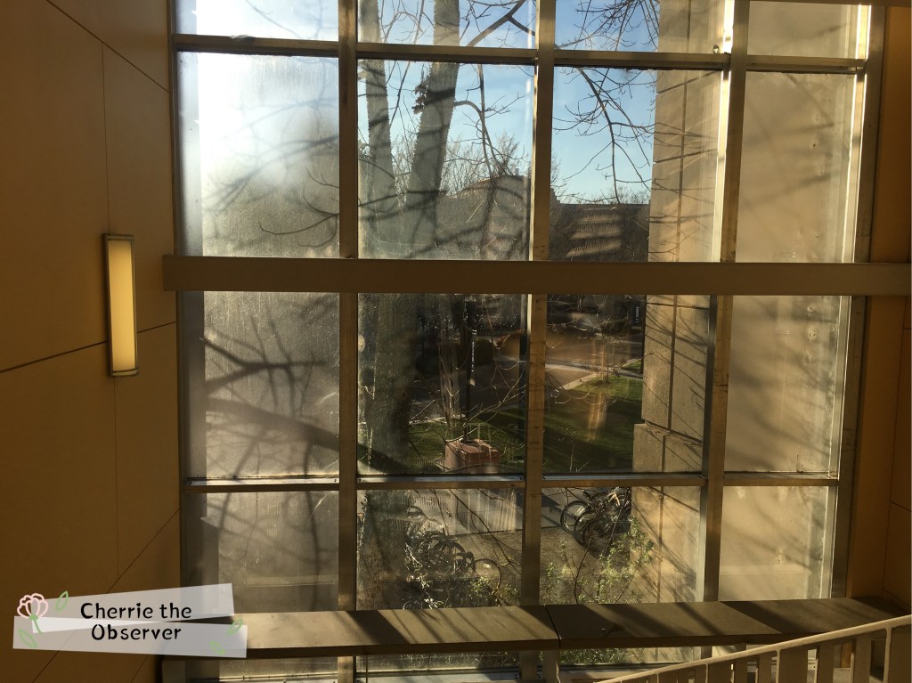I was planning to work in some nice places like everyone else. One day I got off from my chemistry lab, I thought it would be great to work by those windows in stairs. However, since I have a comfortable dorm, I just don’t want to pack everything and move.